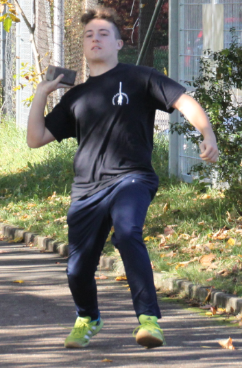 In der Schwergewichtsklasse der Schüler A ging der 14jährige Oßweiler als Mitfavorit an den Start. Im ersten Versuch überraschte Marvin Baumann aus Fränkisch-Crumbach die Konkurrenz mit einem Stoß von 13,80 Meter. Diese Leistung konnte Moritz im dritten Versuch um einen Zentimeter auf 13,81 Meter verbessern – neue persönliche Bestleistung und die Führung nach dem Vorkampf. Im Endkampf ging es dann Schlag auf Schlag. Der Erfurter Kugelstoßspezialist Luc Julien Fischer übernahm im vierten Versuch die Führung mit einem Stoß von über 14 Metern, die er dann noch mit überragenden 15,26 Metern im fünften Versuch verbesserte.