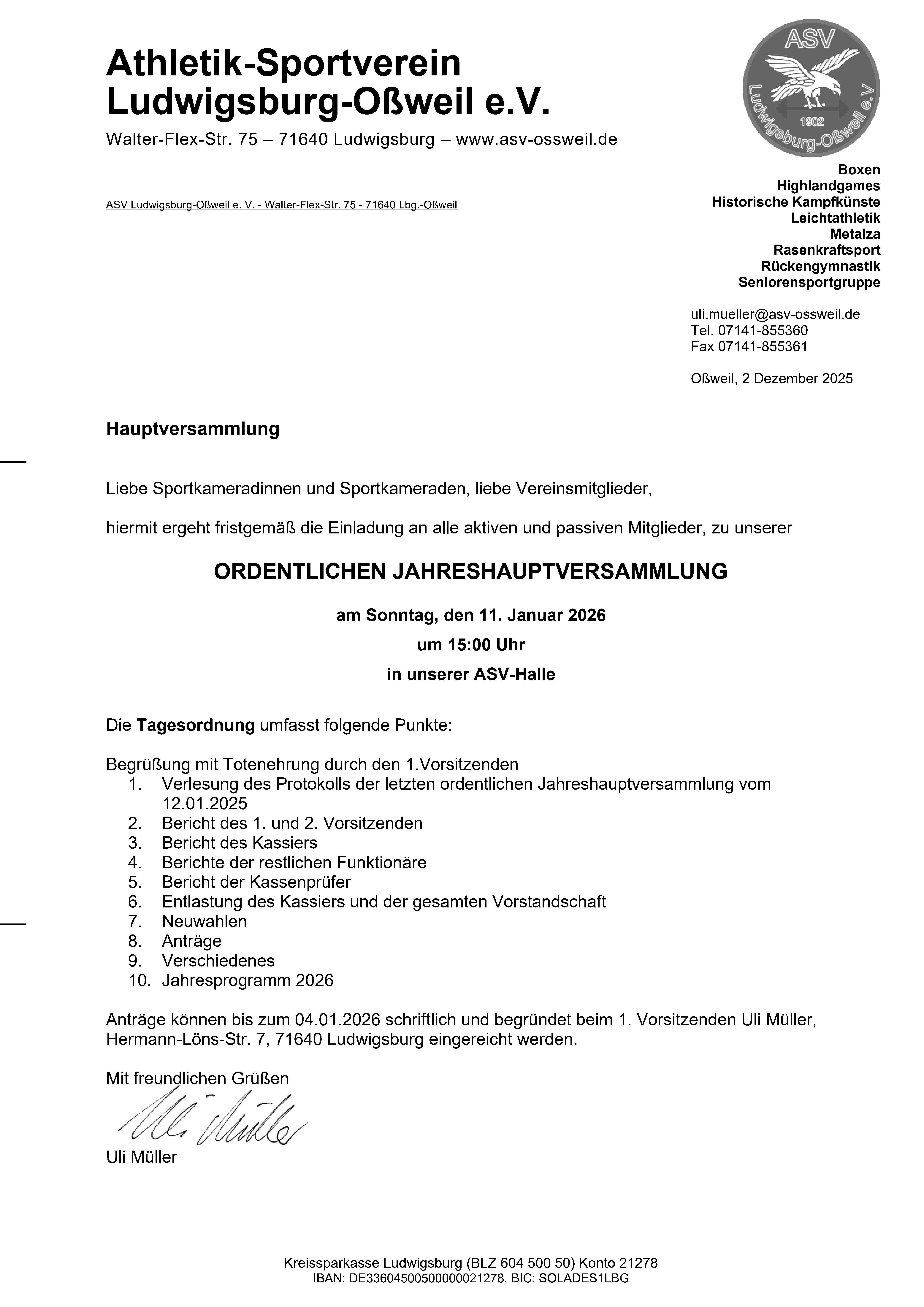 Jahreshauptversammlung 2026
